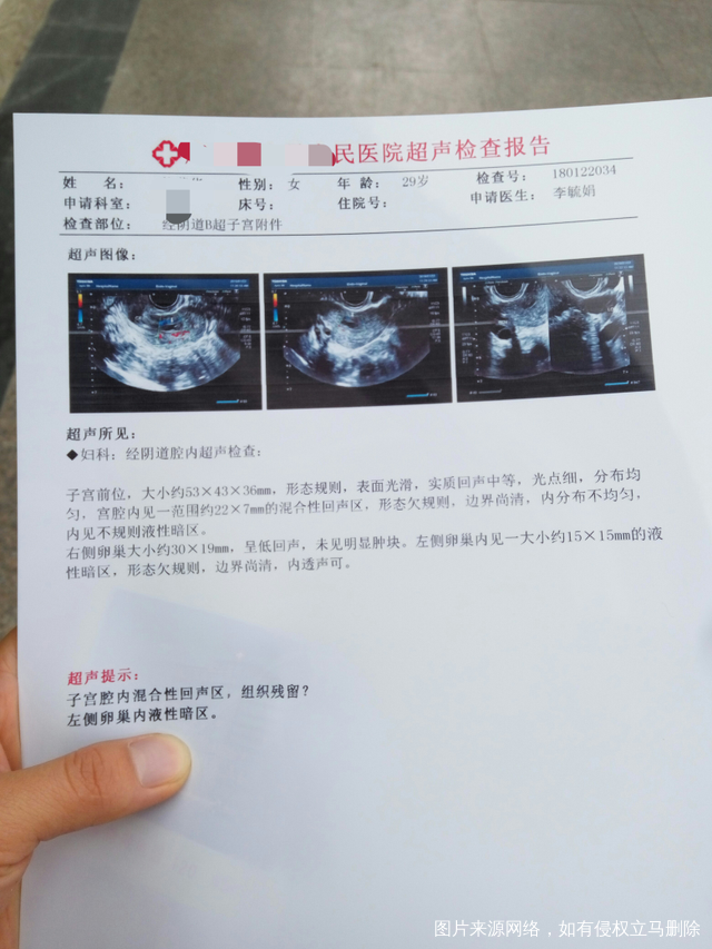 做人流一周复查了,说干净了,血一直没干净今天又做了个B超结果如下……本地医生叫我清宫,我真的不敢清宫了,就先走了。停胎两次还清宫那真的伤不起。