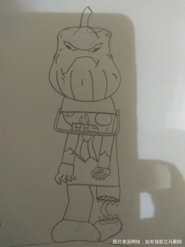 儿子刚画的,新鲜出炉,倭瓜砸僵尸