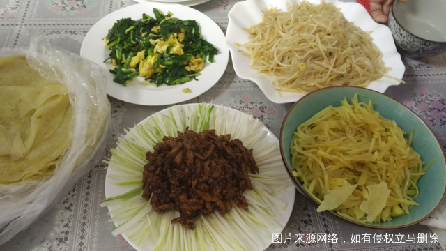 今天中午吃春饼,做了四个菜