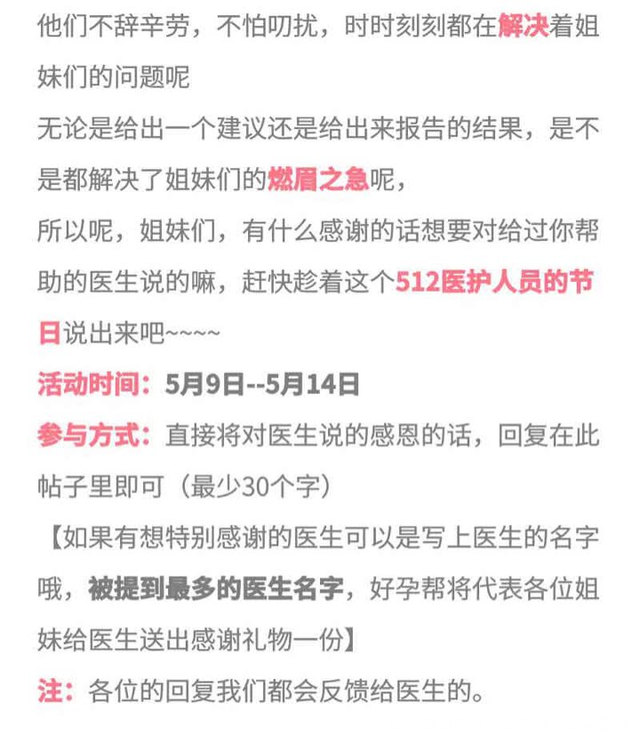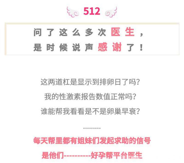 首先,感谢好孕帮的每一位医生,每当我们在这求助医生的时候,他们都会像自己的亲人一样给予我们帮助,不需要像去医院一样,排队、挂号再排队,在这里,只要我们不懂,只要求助,他们就第一时间回复我们,让我们第一时间,心里得到安慰!能素不相识的给我们帮助,他们就是我们心目中一群可亲可敬的白衣天使。
