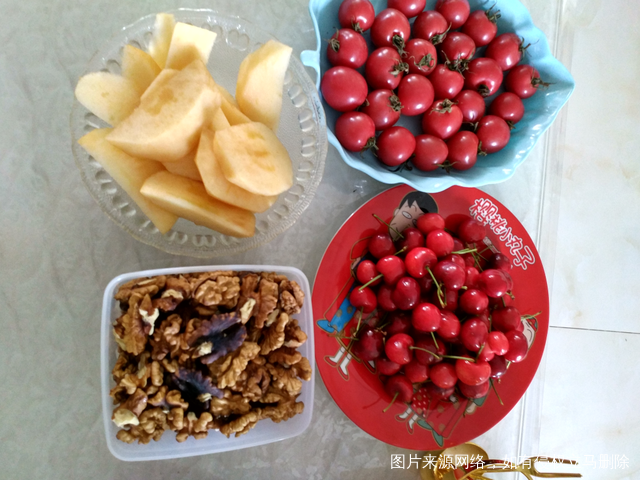 我睡起来看见他给我剥了一整盒的核桃和切好的苹果