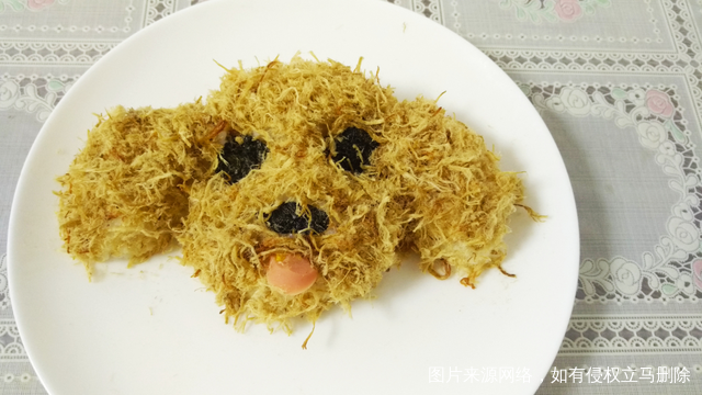现在更不喜欢吃了,我也跟着上火,晚上给她做了些肉松,加点米饭,做个小狗[汗]果然手工废,做的不像[尴尬]不过还算给面子,吃了三分之一