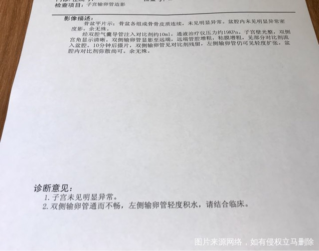 输卵管造影通而不畅,有轻度积水