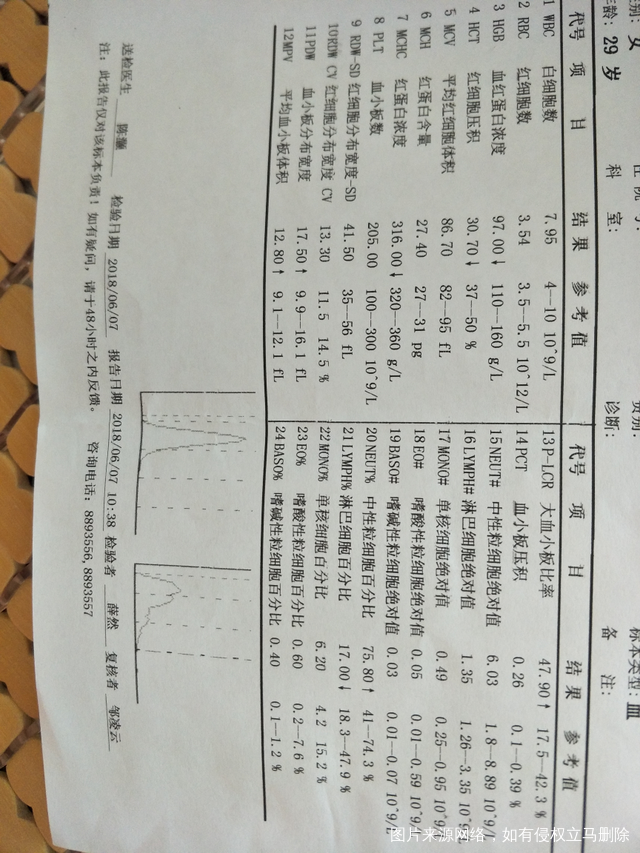 怀孕六个月了,血常规的结果,麻烦医生看一下,除了贫血还有哪些数值不正常的?后期需要注意什么?
