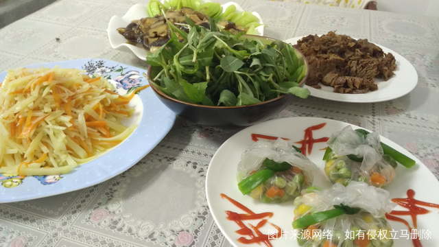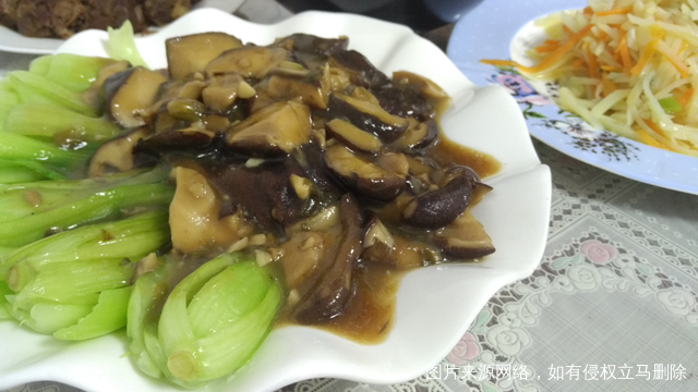 晚饭,香菇油菜,酱牛肉,土豆丝