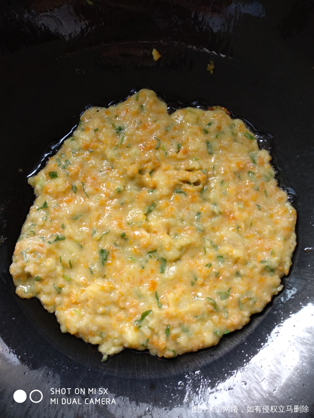 制作方法:土豆和胡萝卜蒸熟打成泥,青菜切碎,加入鸡蛋,少量面粉,肉松一包 搅拌均匀,一岁以上的宝宝可以适量加点盐,