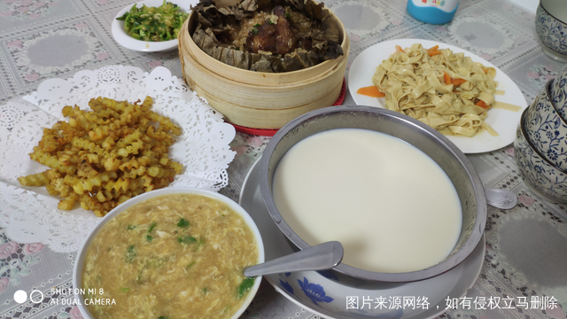 早上剩的豆浆,让我做成了豆腐脑,中午剩的荷叶排骨,晚上炒了干豆腐,烤了土豆,又是一餐饭