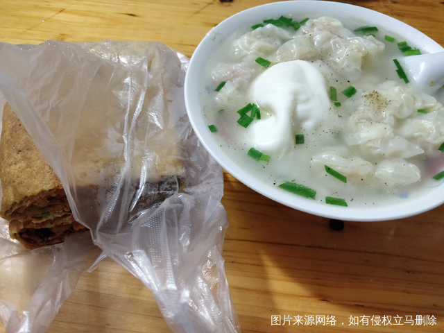 早上抽完血去吃早饭,杂粮煎饼+馄饨