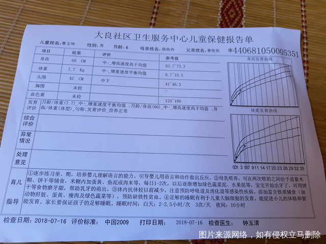 体重的检查结果这是宝宝6个月做的体检,医生帮你看看验血和身体发育正常不?