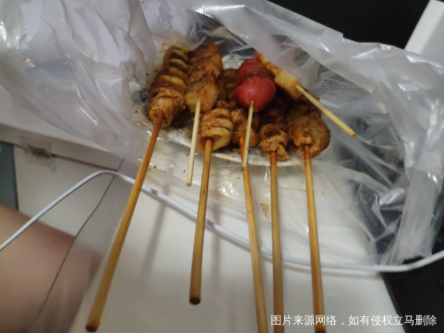 回家的路上 推着宝宝顺路买了点烤串给老公 等哄宝宝睡着了 一起边看综艺节目边吃
