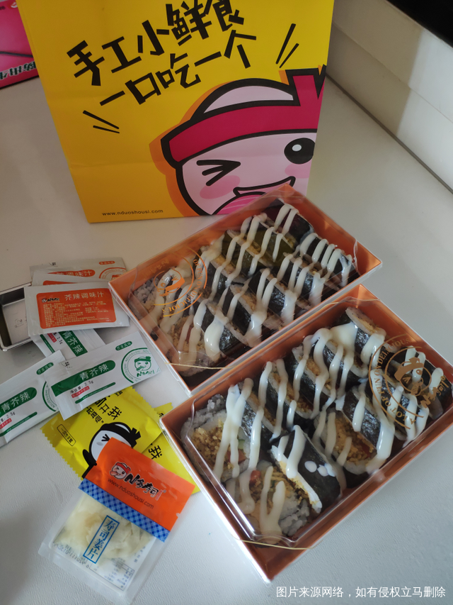 点了寿司外卖 感觉比在实体店里给的量大 还给了调料包