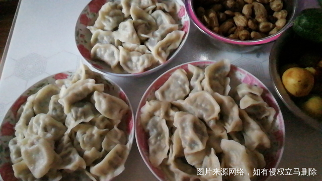 正好吃饭,猪肉三鲜跟猪肉芹菜的,开吃