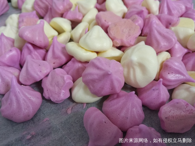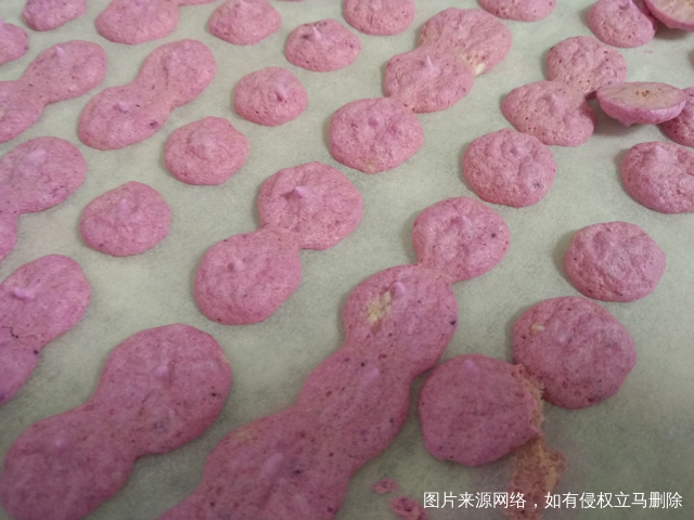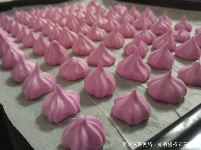 前几天特意又买了个花嘴,今天试了一下,酸奶溶豆花纹差点,火龙果溶豆挤好后不错,然后我满怀期待的送入烤箱,过了一会一看,居然没形了(最后一张图,惨不忍睹),出炉后我分析了一下原因,应该是用烤网的问题,然后我又重新做了一盘,成功了[得意]装袋封口
