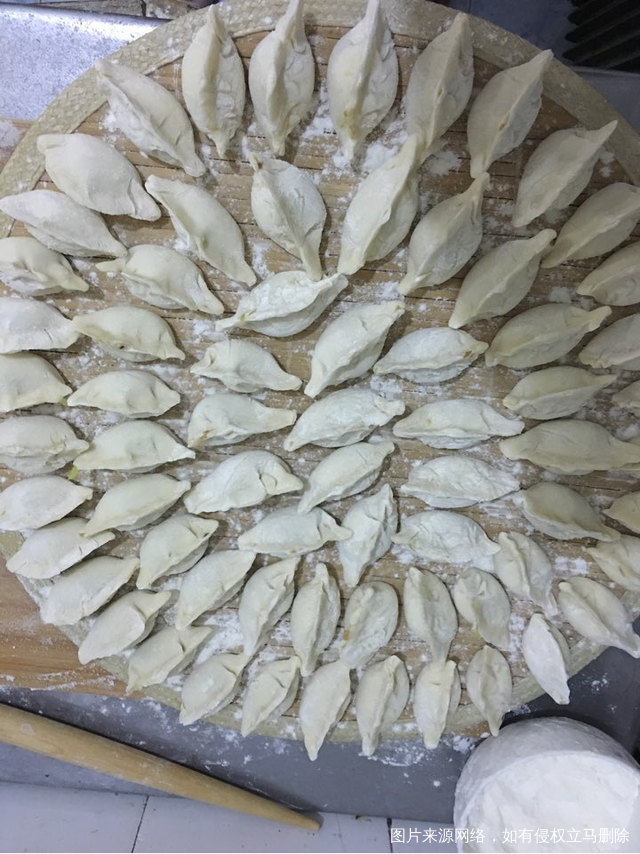 和面,剁馅,包饺子,一共用了俩小时,中间儿子醒了还过来让他吃奶