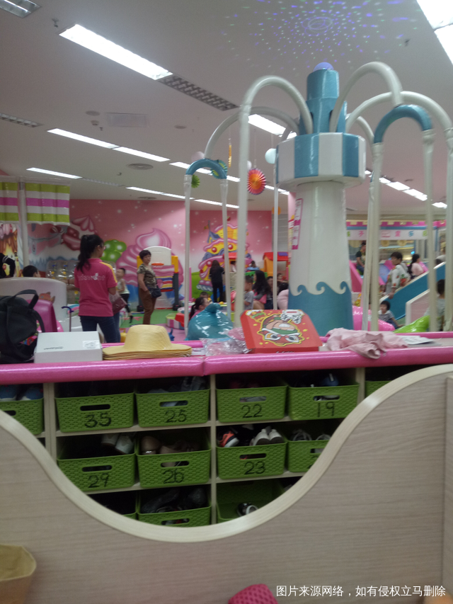 今天中秋节。外面下很大的雨。我只有带我大宝在游乐园玩。放我好无聊。