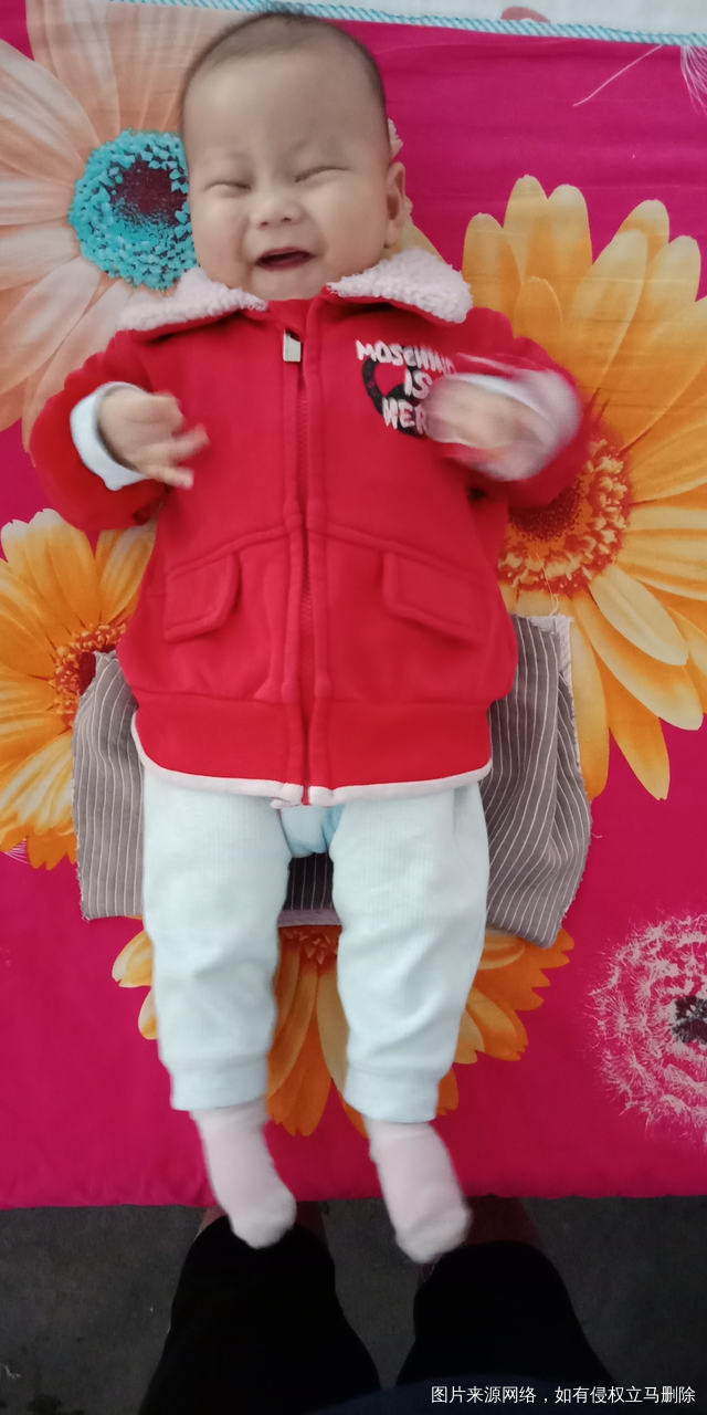 四个月,妈妈才抱起你来,因为之前都没怎么抱你,所以竖抱的时候你头挺不好,晃晃荡荡的,每次抱着你,你总会两个手紧紧的抓住妈妈的衣服,妈妈知道不能天天让你躺着了,不能让你每天面对天花板,所以从那以后妈妈每天都抱你,抱一会你累了就躺着歇一会,渐渐地,你头不晃了,能直立好一会,也不会那么紧紧抓住妈妈衣服了,后来你能自由转头了,再后来抱着你你也能高兴地扭动身体了。