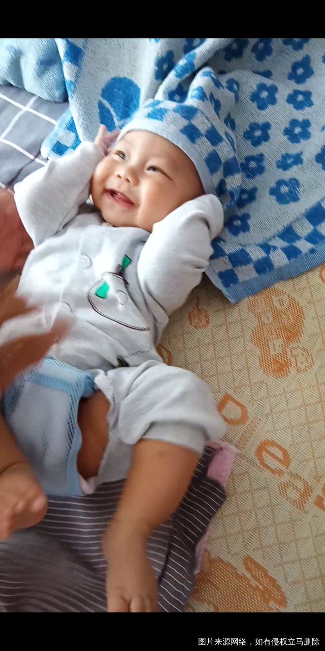 出了满月妈妈让你趴着练抬头,听力,还是视力自己手的抓握能力,开始总是有些吃力,可渐渐的,你进步很快,四十天的时候你眼睛就能很快的跟着色彩鲜艳的玩具移动,而且也会寻找声音的来源。可是看你抬头很吃力,妈妈有些心疼,就没让你多练,直到你三个月才能抬头很好。四十多天的时候妈妈发现你扭动身体想要翻身的架势,可是你似乎力气不够,只是头扭向后边,身体朝后弯曲着,根本无法翻过去。直到三个月的时候,你开始拼尽全力想要翻过去,身体已经侧过去了,可头总是朝后,不会向前拱,每次你都急得哭,妈妈会帮助你翻过去,可那时候你似乎并不太领情,翻过去了也是哭,妈妈一度很郁闷,甚至自私地不想让你翻身,因为妈妈自己带你,怕你早早会翻身了妈妈看不了你,可妈妈终究阻挡不住你成长的步伐,112天,你终于自己翻过去了,而且从那以后,翻身成了你的乐趣,甚至晚上睡着了也会翻,每天都会睡梦中翻身醒。