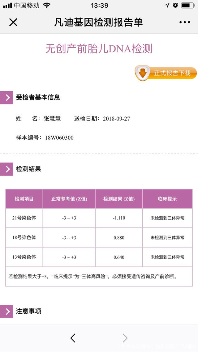 你好,请帮忙看一下做了无创DNA的结果,是不是就没事了!
