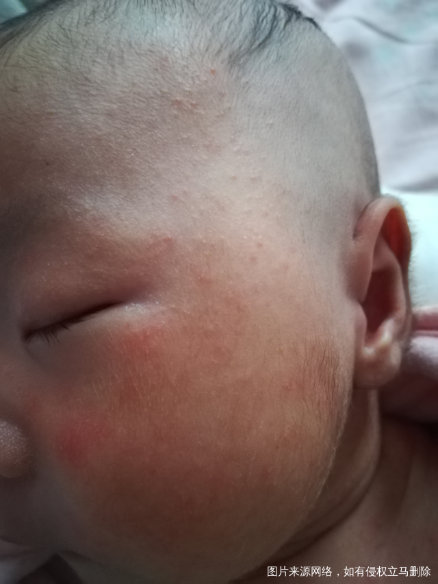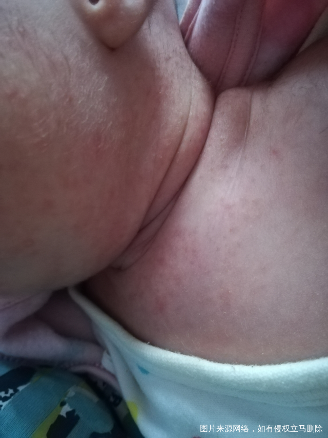 刚满月的宝宝脸上脖子一圈起了好多疹子