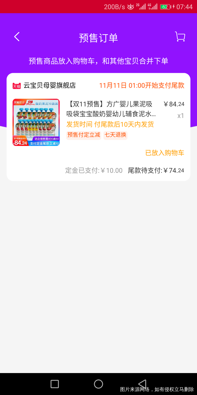 给宝宝买的酸奶果泥,是真心便宜啊。先提前交了一个的定金,因为觉得冬天了,喝这个会太冷。要不真的想多买几个。反正还有两天呢。让我再纠结纠结😣