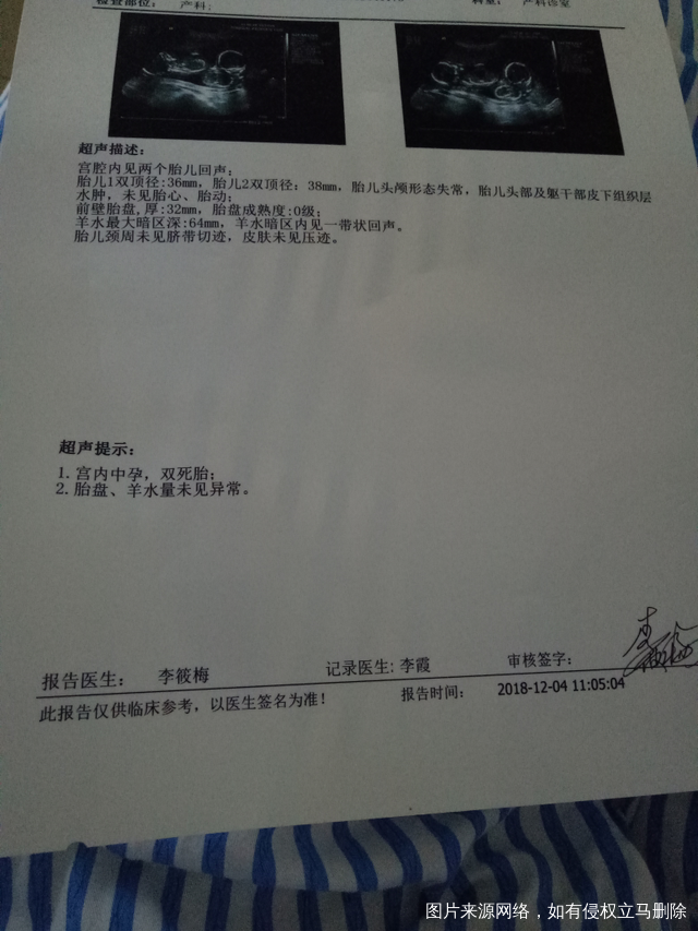 孕18周+5双胎,昨天产检双胎胎死宫内,请问一下医生是什么原因导致的胎死宫内吗?从B超单上能不能看出宝宝是什么时候没了心跳的?