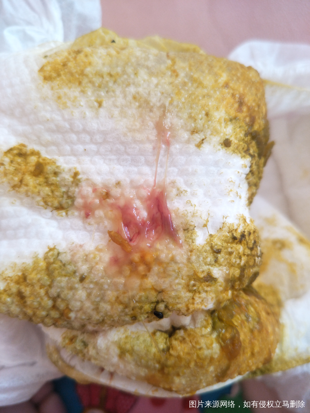 麻烦医生看看 这血丝是咋回事 宝宝最近感冒流鼻涕 我给宝宝吃了三天小儿氨酚黄那敏颗粒 除了正常吃母乳就吃一顿米粉 昨晚尿不湿上有一点花生粒大小的血丝 今早大小又有点血丝 请问这是怎么回事 孩子吃睡精神都正常