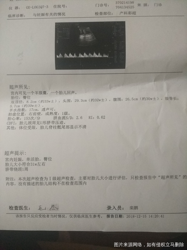 年龄31岁,二胎,最近几天感觉宝宝老是在肚子下面踢,今天去医院做了B超。
