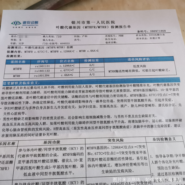 麻烦医生帮忙看下这个单子低度风险什么意思,我们这边大夫说要吃叶酸吃到生