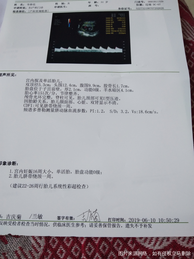 今天是怀孕16周去做了胎心监测还有做了一个B