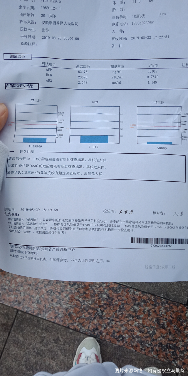 请医生帮忙看下我这个唐氏筛查有没有问题? 今天去拿结果医生没在。