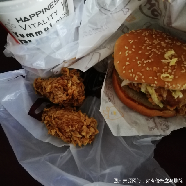 今天孩子自己吃了两个鸡翅,汉堡没有吃几口