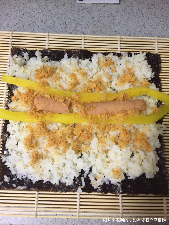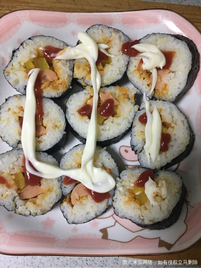 外面下雨了,大宝要吃寿司,可是家里没有香蕉,没有黄瓜,也没有蛋黄了,就这样凑合凑合,两个小王八蛋也是分分钟消灭掉啊!