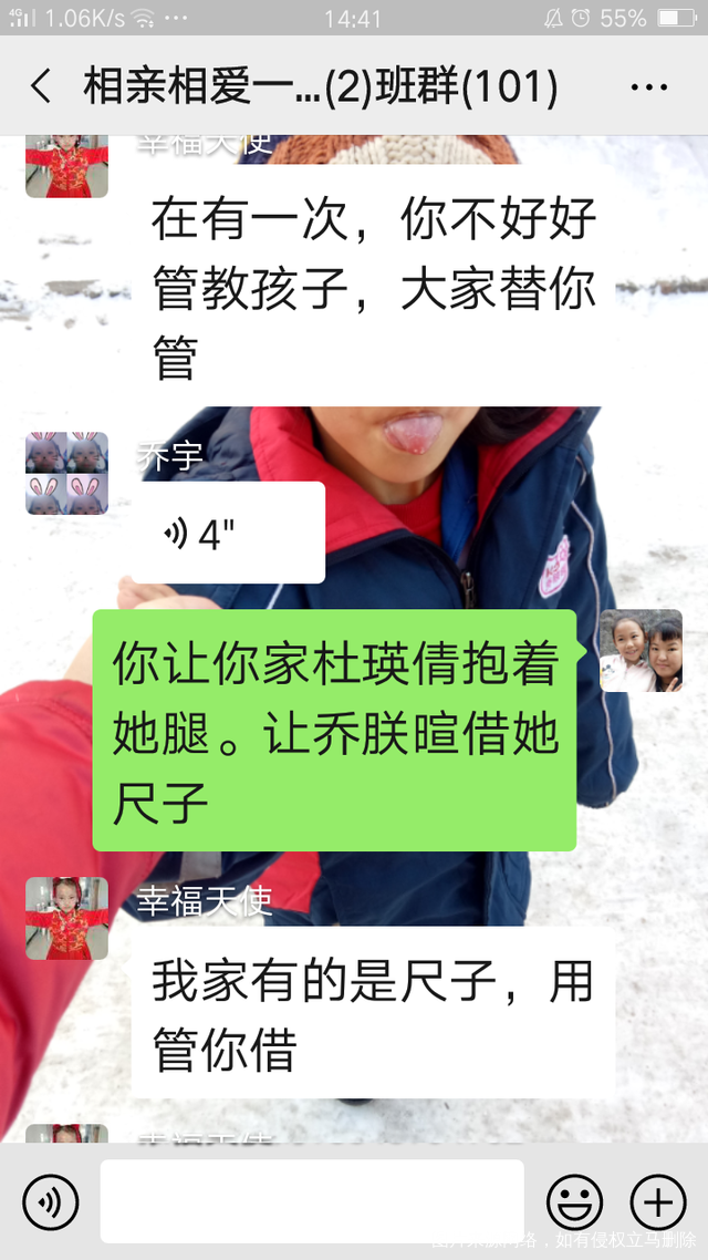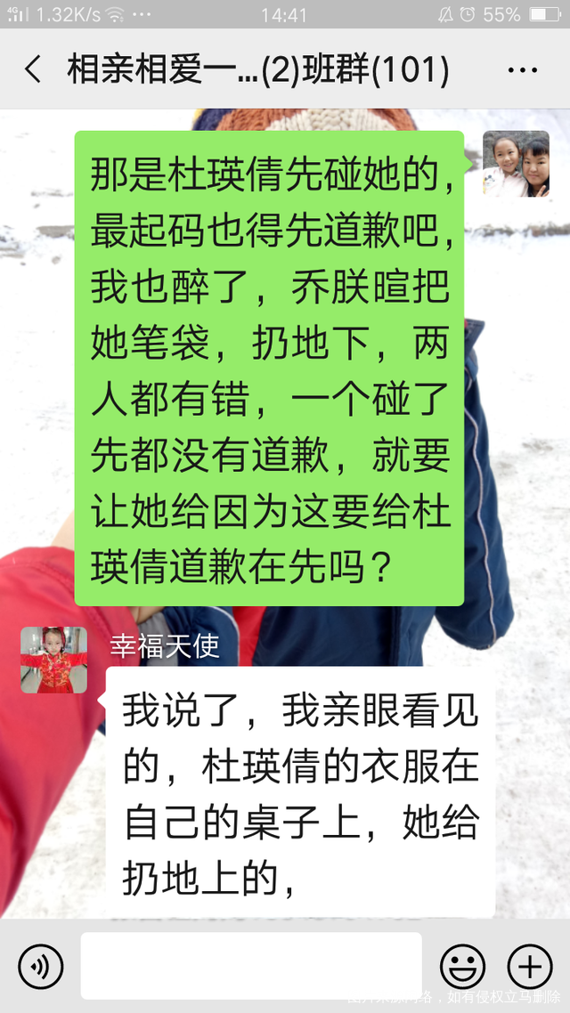 这种人你不应该和她辩论!让她说她的,然后你说一句:对不起!就行了!言多必失,不要管她怎么说了,老师也在群里,家长和老师都能看清的!