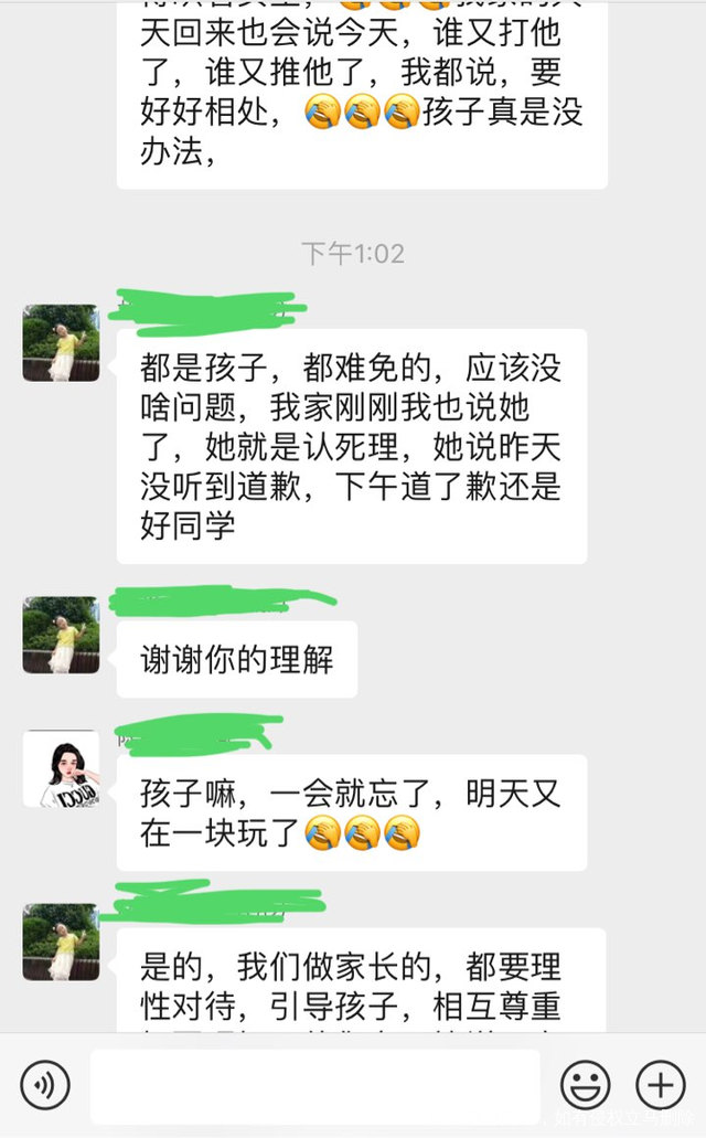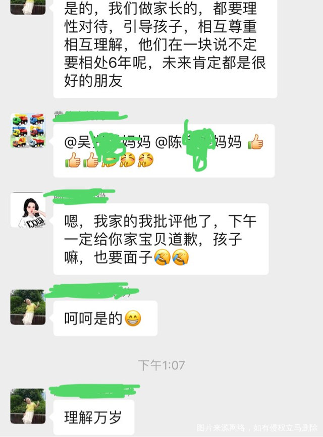 回来的时候,又看到两个宝妈因为孩子的事情,在班级群里的对话!还好,比较和谐!