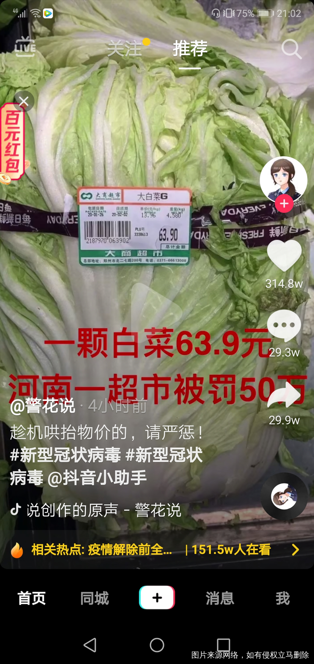 我这也有个说买5块多一斤 俩白菜六十多块钱 韭菜11一斤