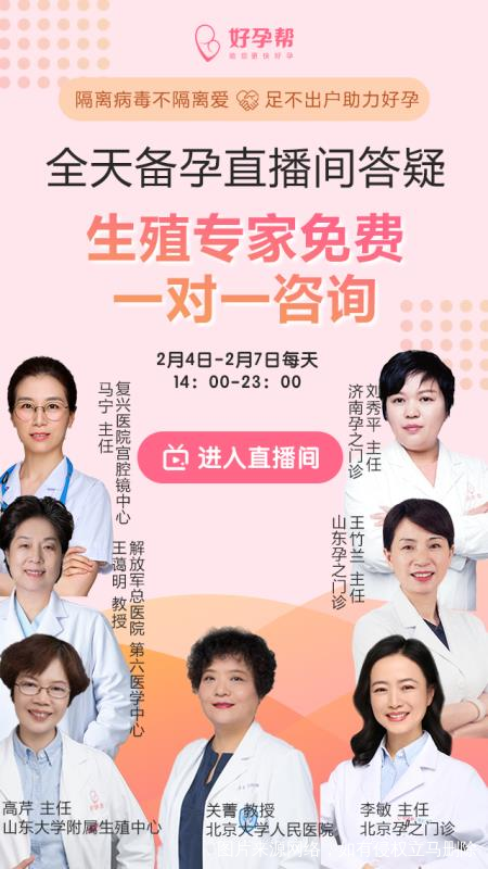疫情尚未控制,少出门保护好自己就是最大的防控。为了最大限度帮助备孕姐妹解答疑惑、去除焦虑、助力好孕,好孕帮&生殖医学2月4日-2月10日每天14:00-23:00每天天将有医疗顾问轮值进行备孕答疑直播,姐妹们可直接在互动区提问,足不出户为您实时解答备孕疑惑,还有生殖专家免费一对一咨询,赶快进入直播间吧