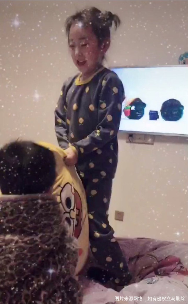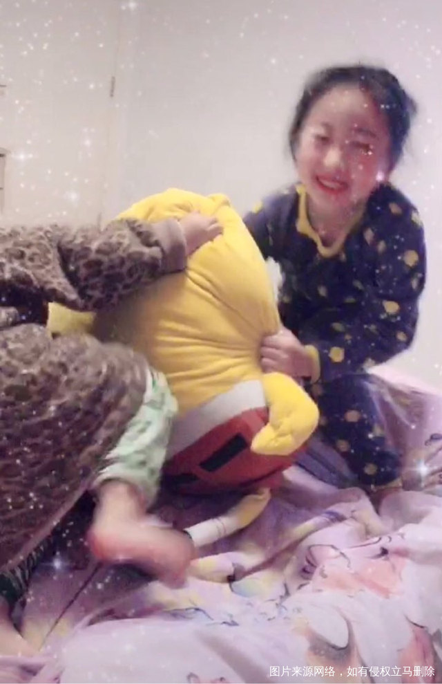 半夜了,两个人还在枕头大战
