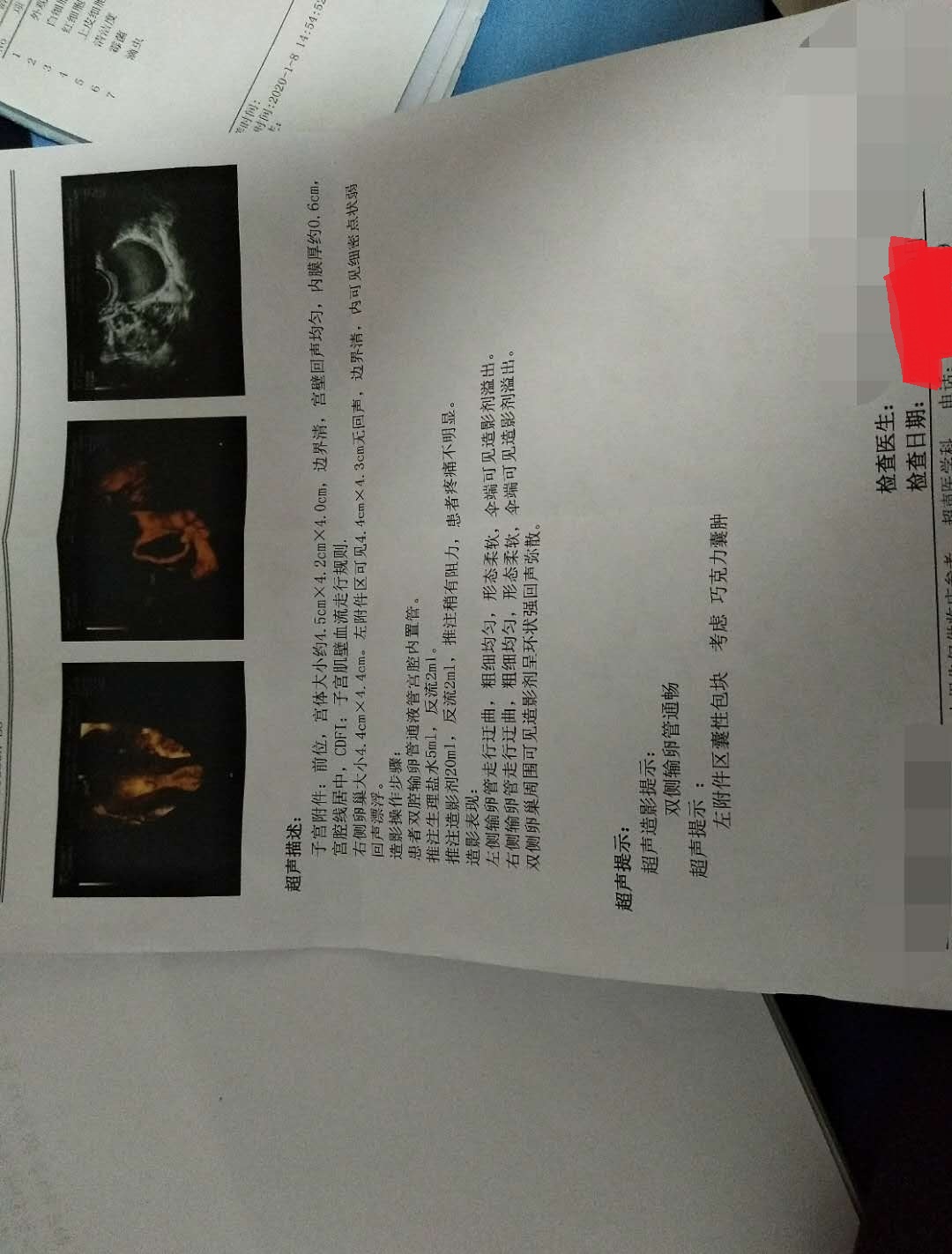 31岁,无妊娠史,结婚一年多点未孕,检查左侧