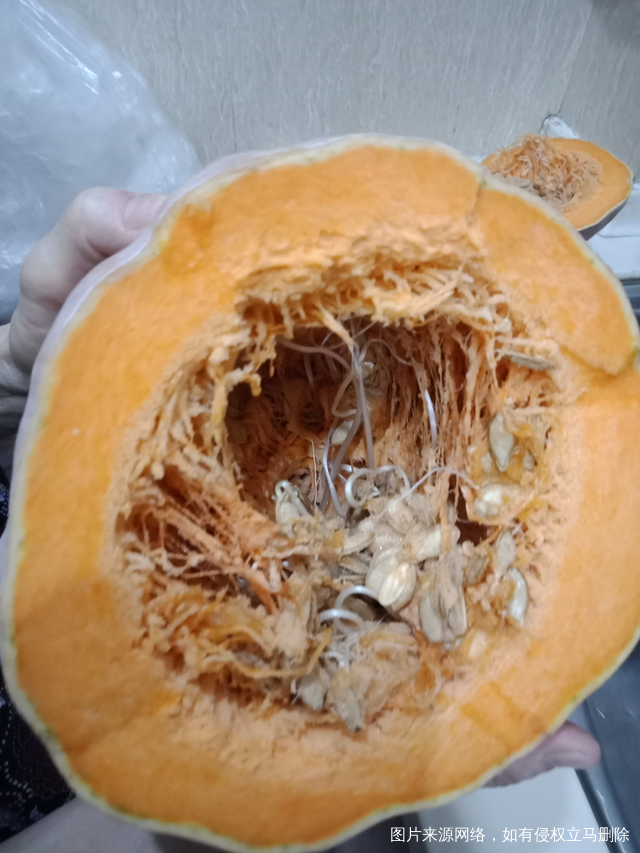 天气太热了,冬瓜南瓜剖开发现里面的籽都长出芽了