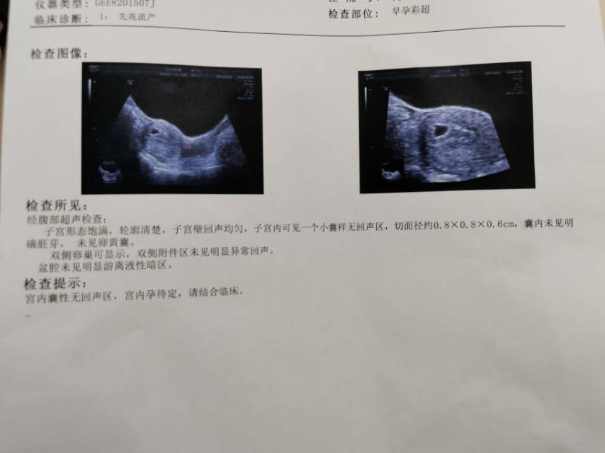 月经周期正常吗 ?如果月经周期正常,停经45天左右就可以看到胎芽及胎心,建议顺其自然,不要盲目保胎 。