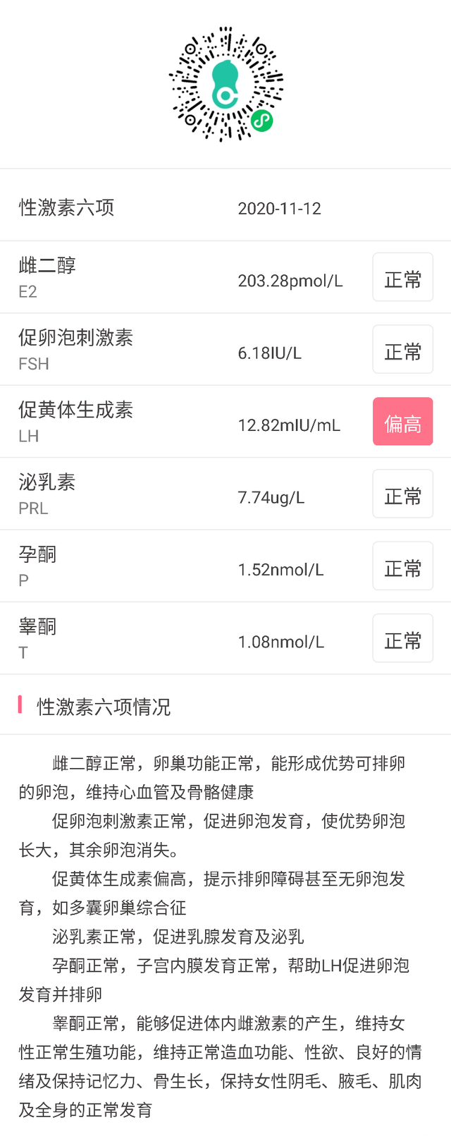 上个月17号来的月经,今天做的激素六项