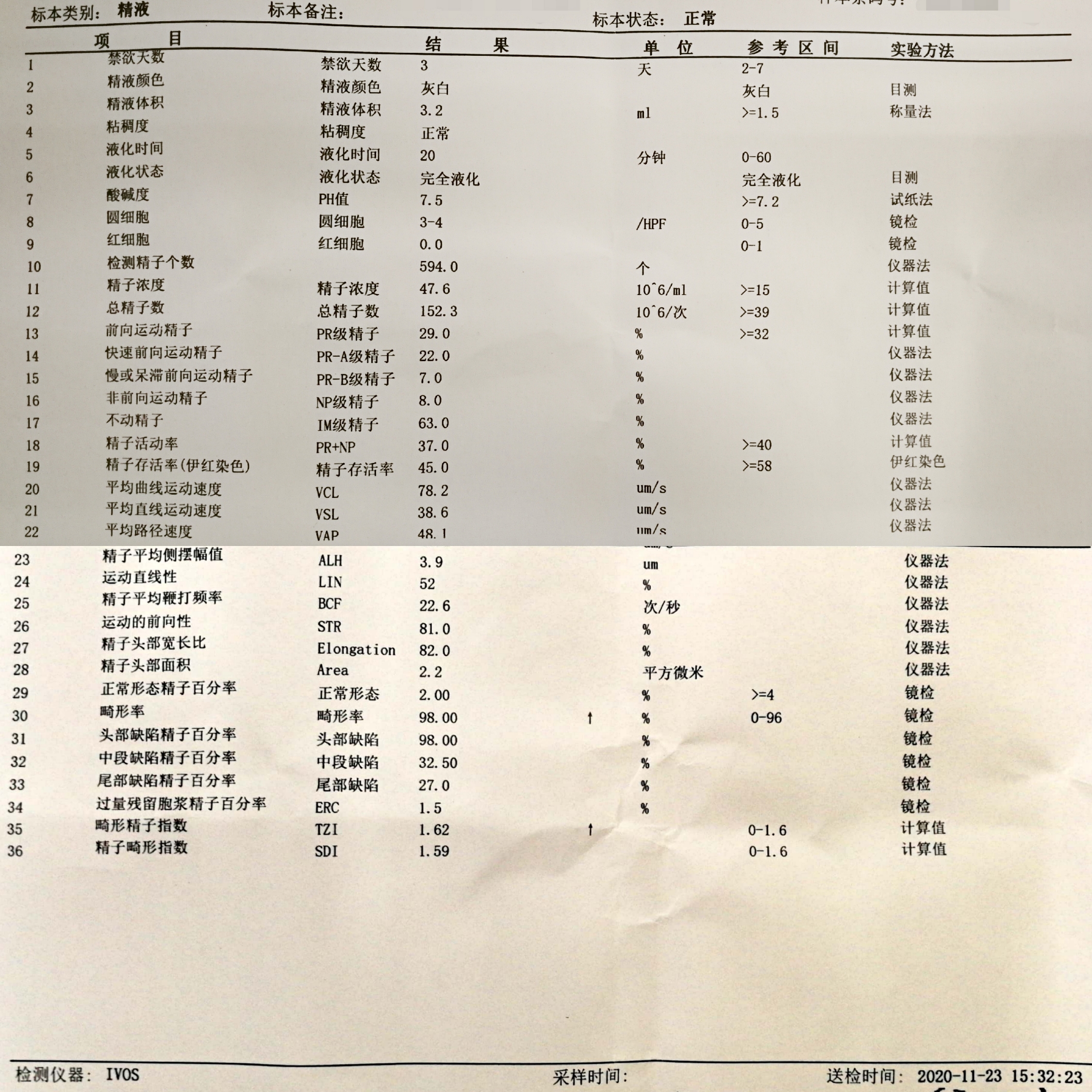男41岁女37岁首次备孕麻烦医生看下精子检查