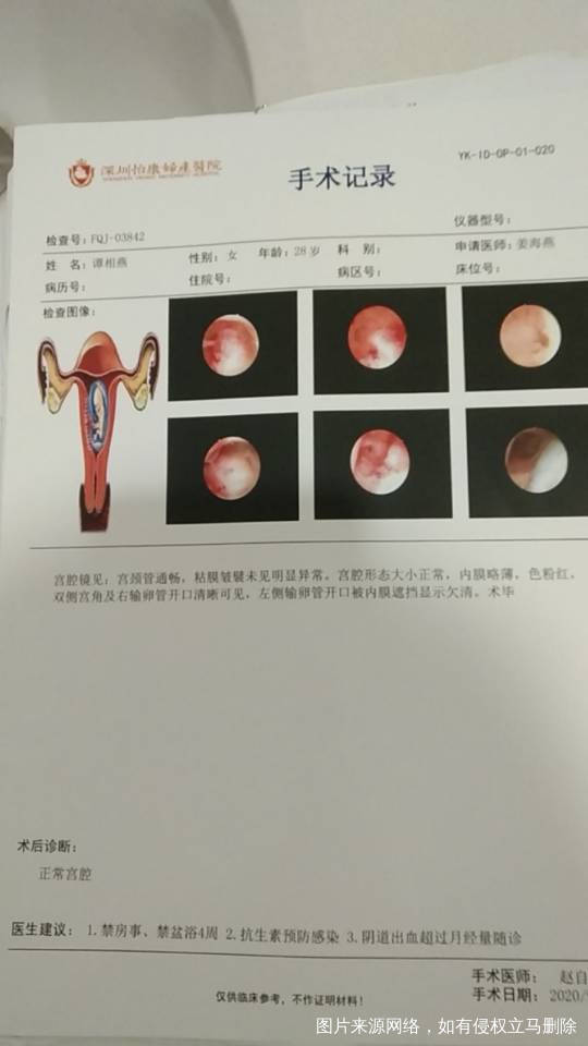 7月16号做的宫腔分离术输卵管通液术术后放置