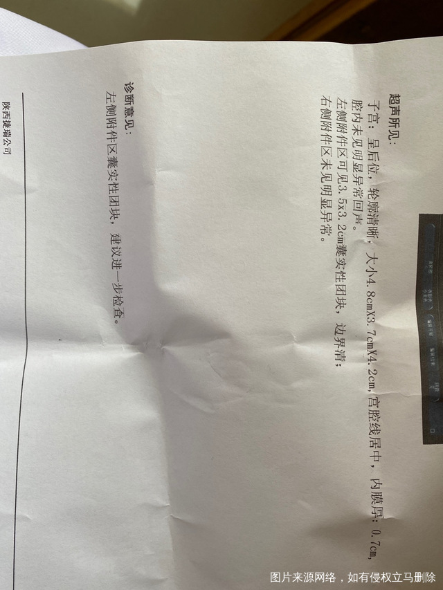 6月中旬做b超未发现异常,今天复查,说有囊实性团块,今天是月经第九天