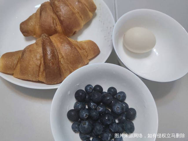 #第21天# 早餐:鸡蛋+两个无糖杂粮牛角包+蓝莓~