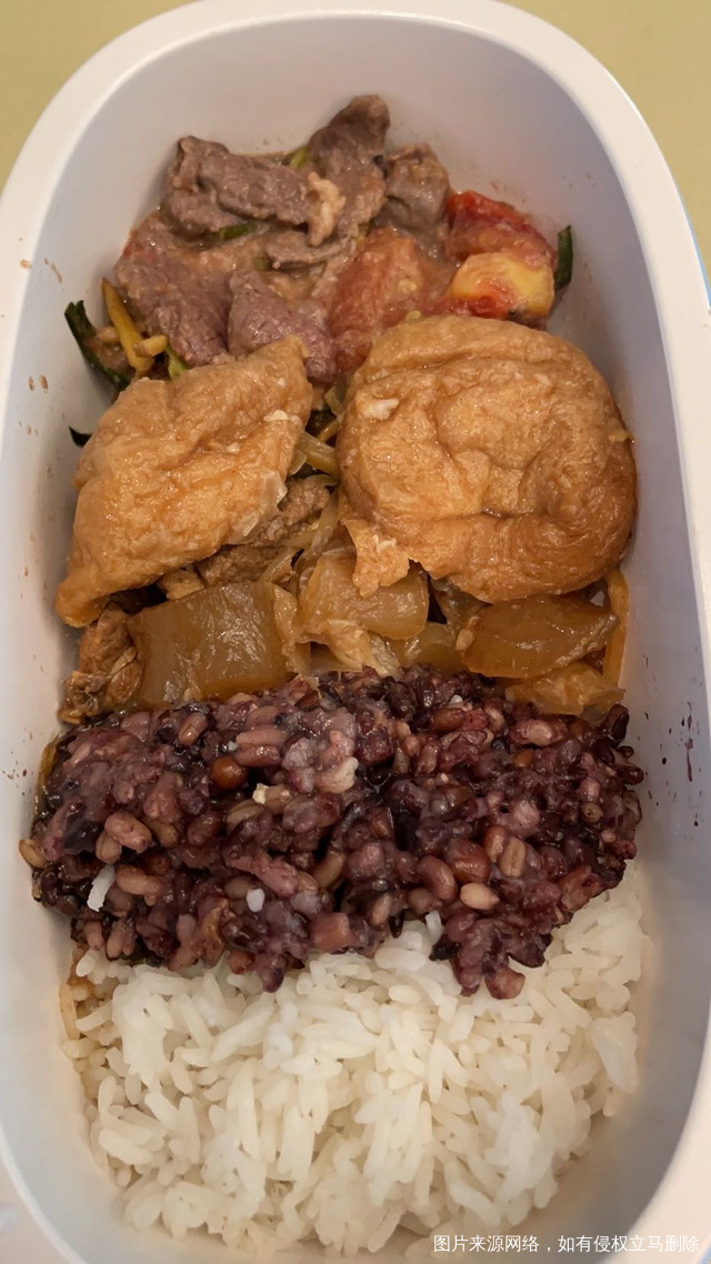 午餐:一半粗粮一半细粮+鸭肉+牛肉