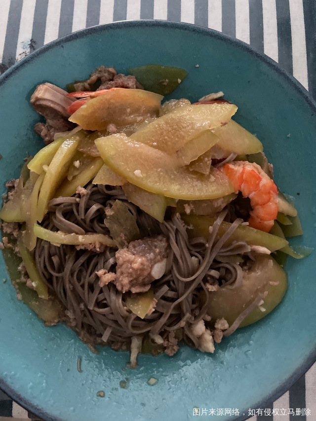午餐:荞麦面+蒸排骨+肉沫炒冬瓜+虾仁