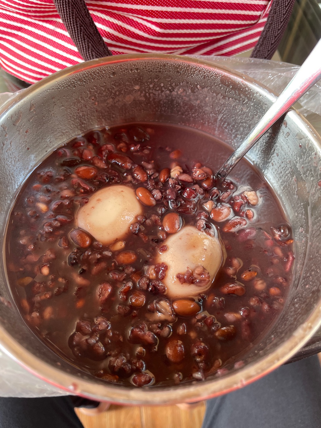 #第5天# 午餐:还是早上煮剩的杂粮粥,然后又煮了两只乌鸡蛋一起吃,补蛋白