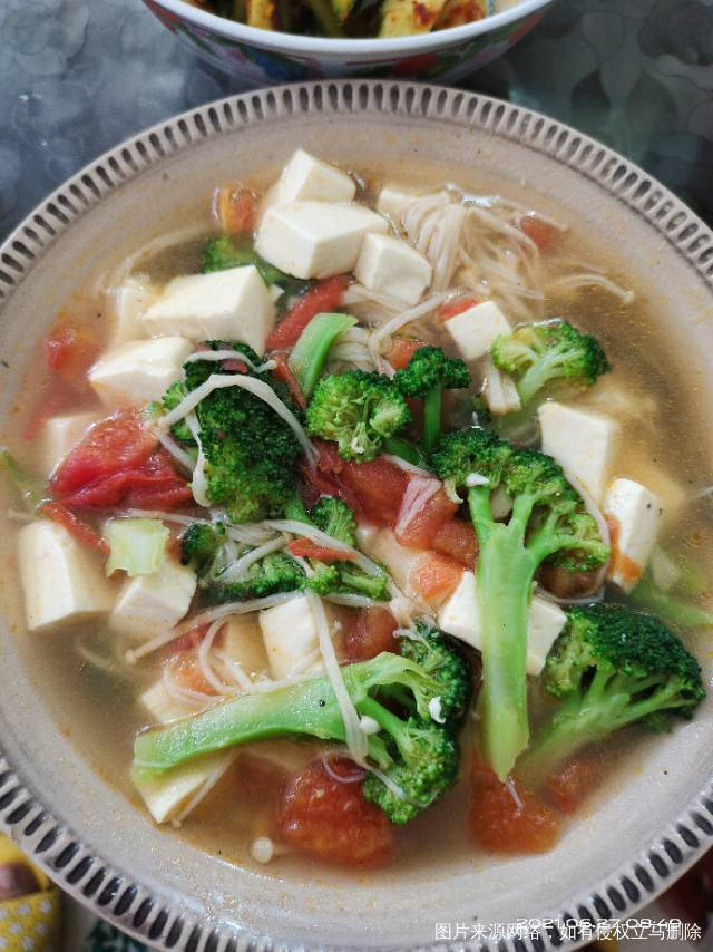 早,西红柿蔬菜汤。加餐,黄瓜一根。午,芹菜叶