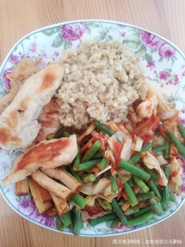 中午,益黎米饭,炒菜,鸡胸肉 晚上,益黎米饭